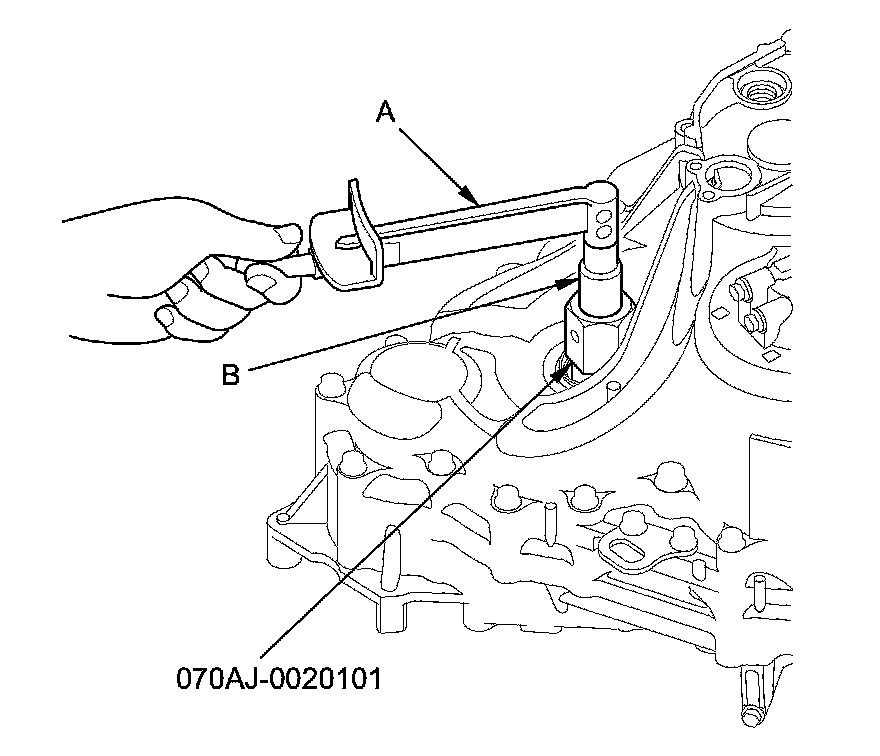 8. Measure the starting torque of the differential assembly using a preload inspection tool, a torque wrench (A), and a socket (B). Measure the starting torque at normal room temperature in both directions.