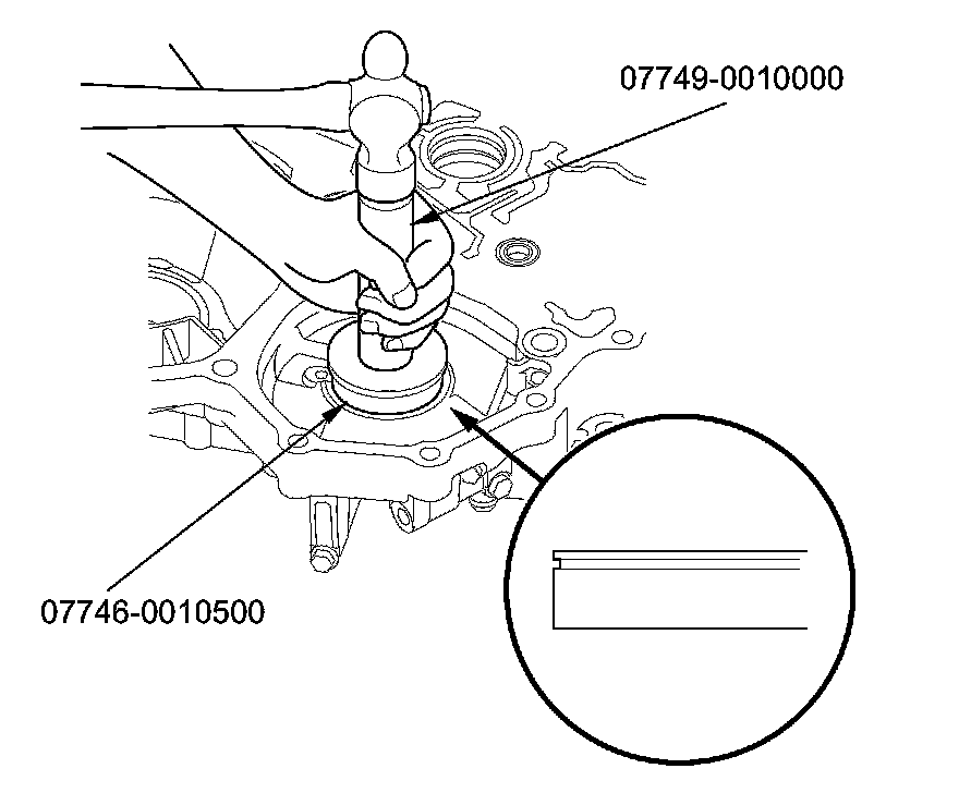 5. Install the 29 x 39 x 9.5 mm bearing into the torque converter housing using the driver handle and the 37 x 40 mm attachment.
