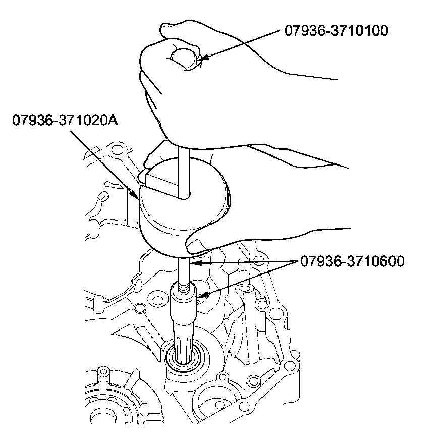 2. Install a new bearing until it bottoms in the transmission housing using the driver handle and the 37 x 40 mm attachment.
