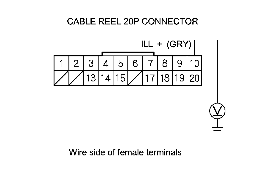 6. Measure the voltage between cable reel 20P connector terminal No. 17 and body ground.