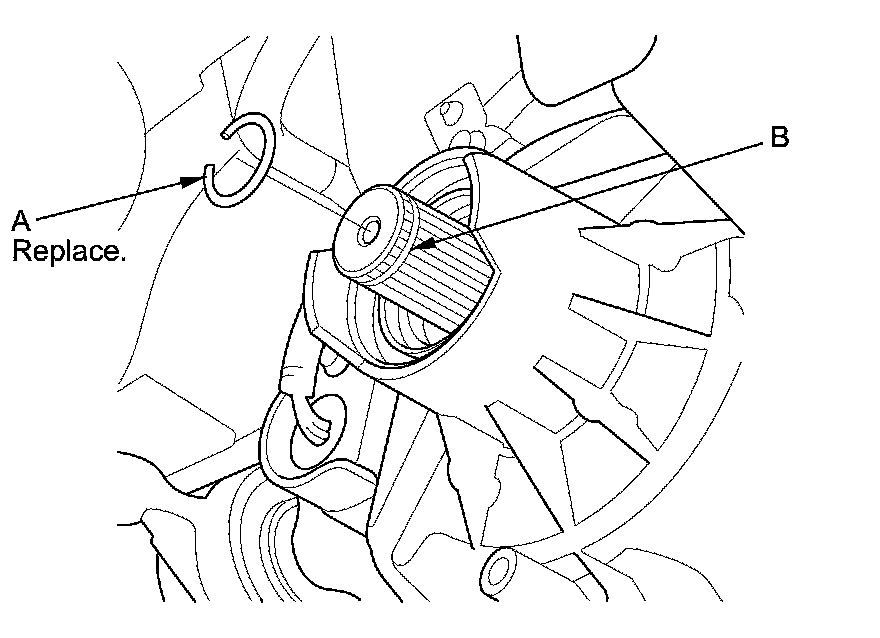 2. Install a new set ring (A) into the groove (B) of the rear differential.