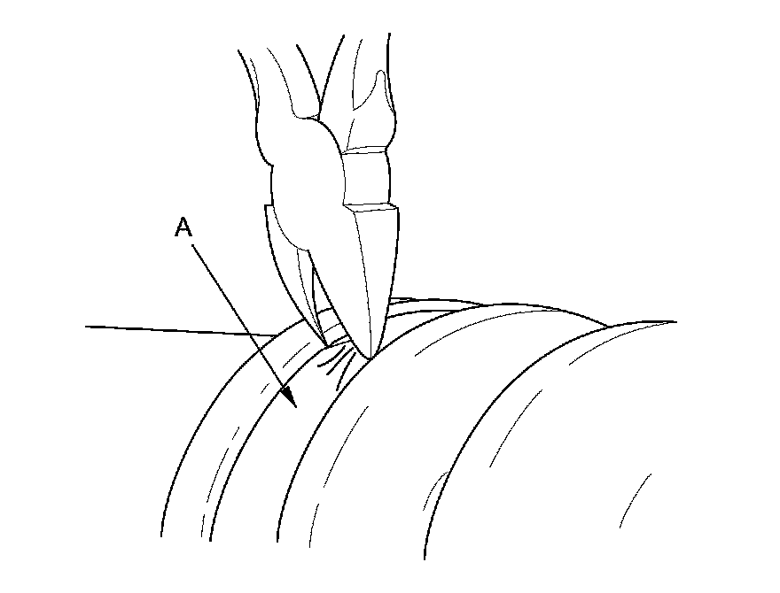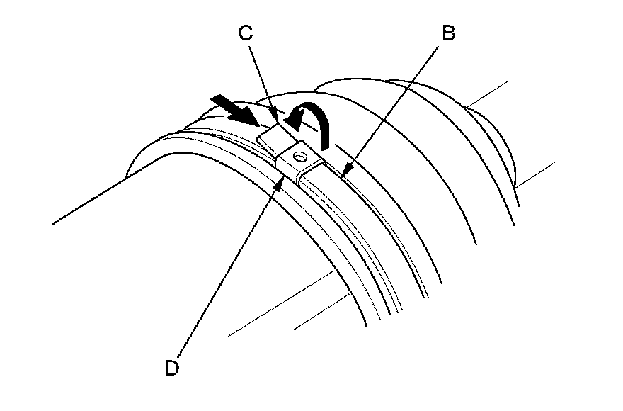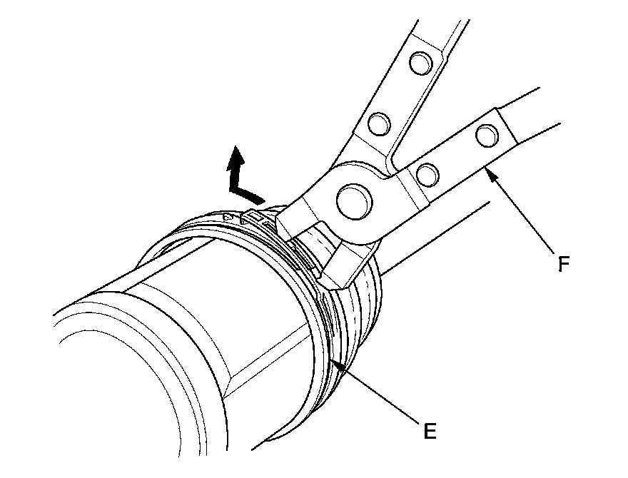 - If the boot band is a low profile type (E), pinch the boot band using commercially available boot band pliers (F).