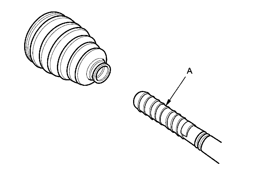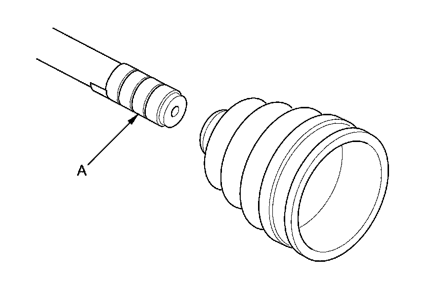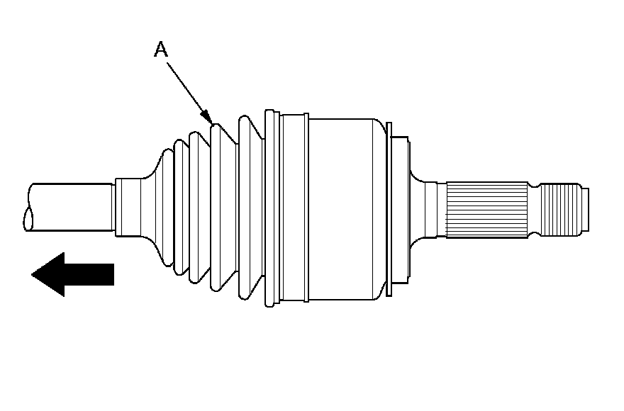 2. Slide the outboard boot (A) partially toward the inboard joint side. Be careful not to damage the boot.
