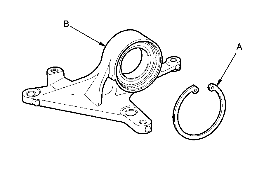 4. Remove the internal snap ring (A) from the bearing support (B).