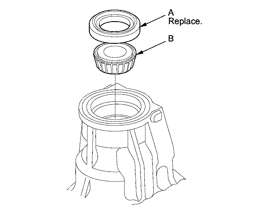 11. Remove the oil seal (A) and the tapered roller bearing (B) from the transfer housing.