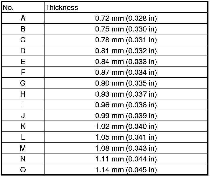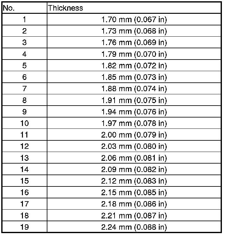 43. Measure the thickness of the removed 80 mm thrust shim, and select a new 80 mm thrust shim.