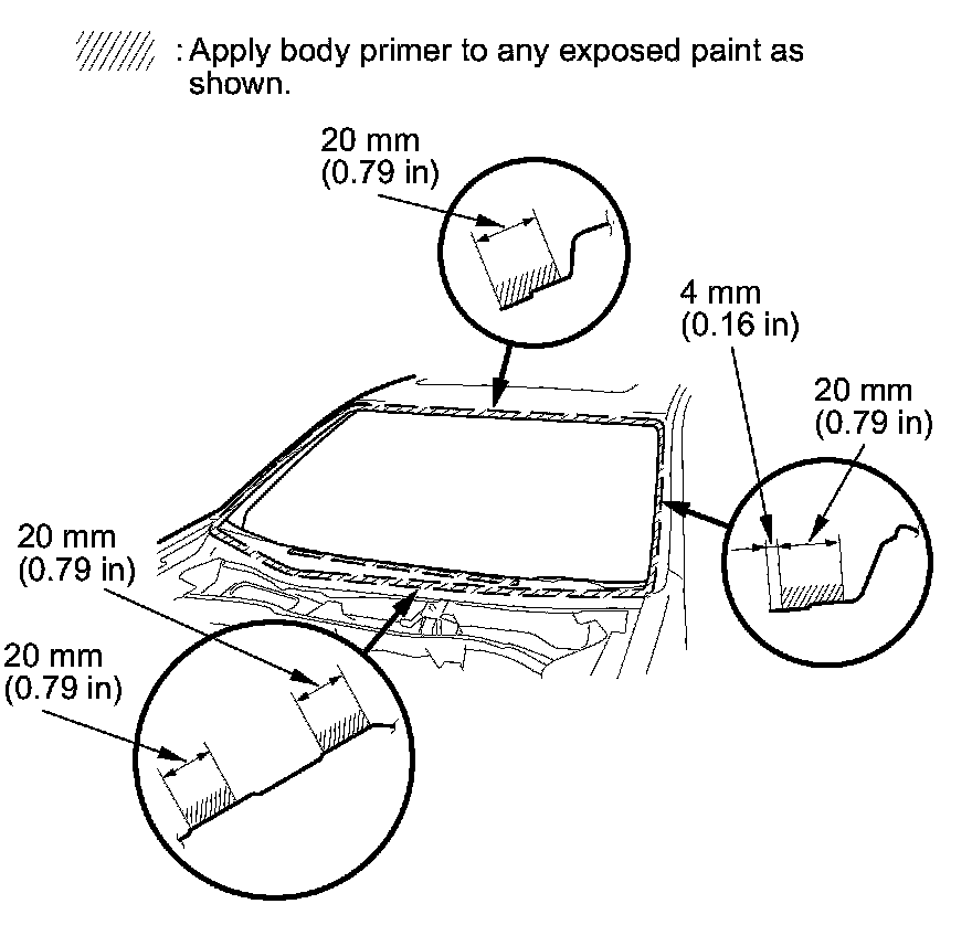 - Never touch the primed surfaces with your hands. If you do, the adhesive may not bond to the windshield properly, causing a leak after the windshield is installed.