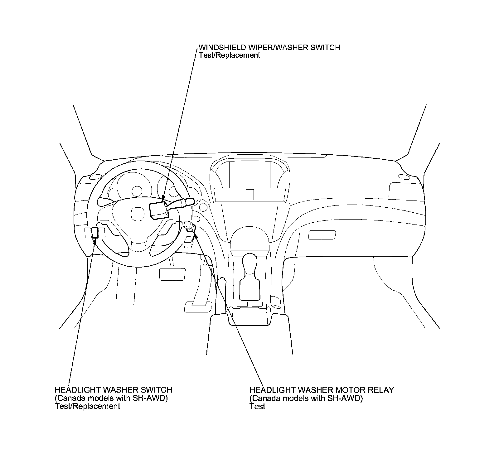 Windshield Washer Switch: Locations