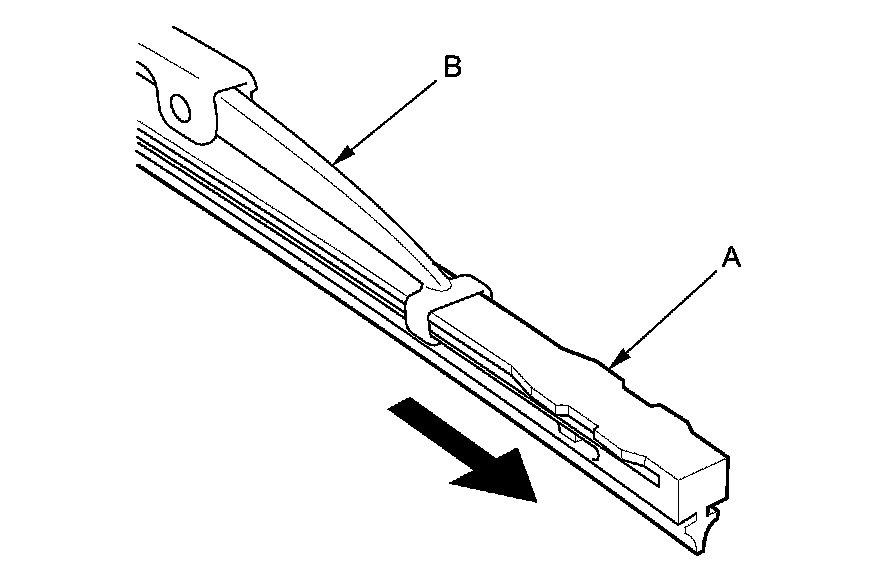 3. Slide the rubber (A) out from the wiper blade (B).