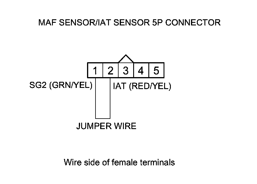 9. Remove the jumper wire from the MAF sensor/IAT sensor 5P connector.