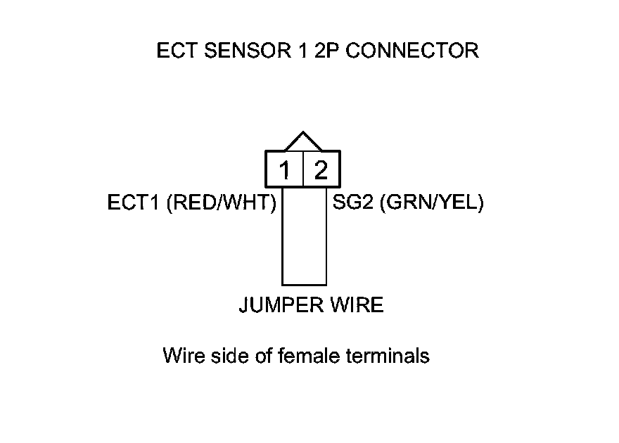 9. Remove the jumper wire from the ECT sensor 1 2P connector.