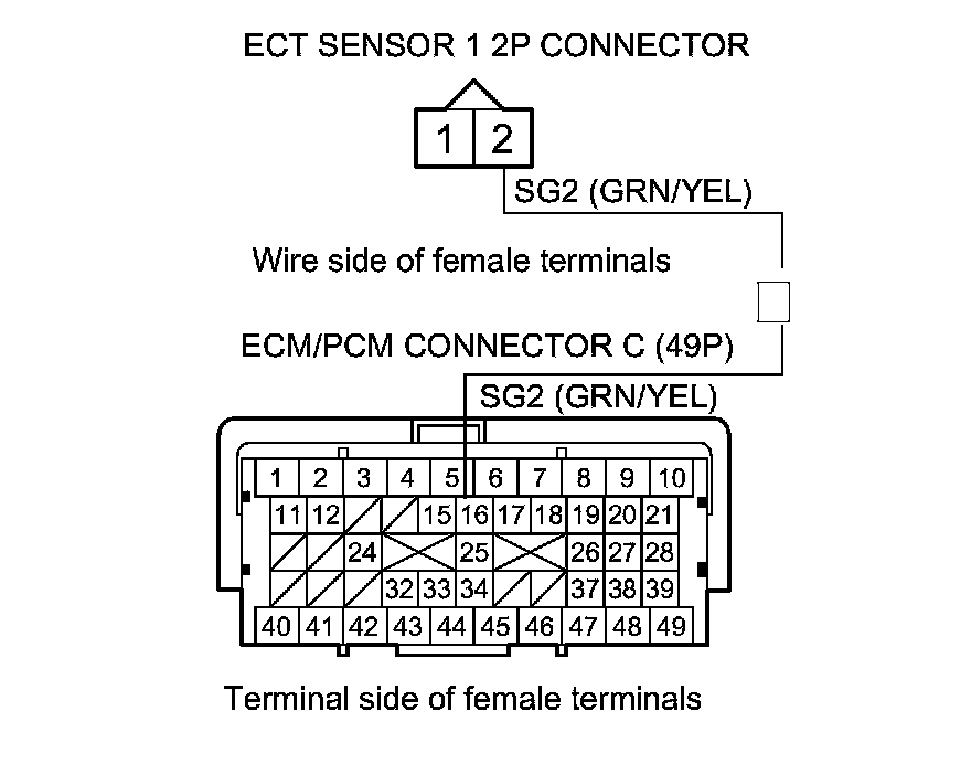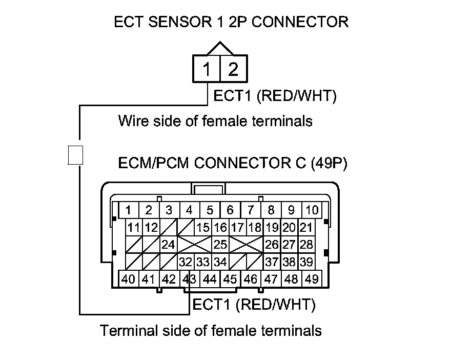 19. Check for continuity between ECM/PCM connector terminal C32 and ECT sensor 1 2P connector terminal No. 1.