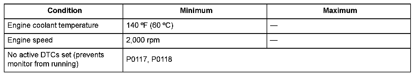 Conditions for setting the DTC