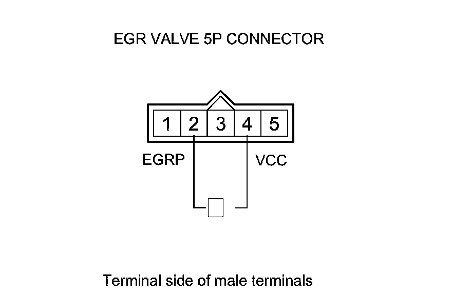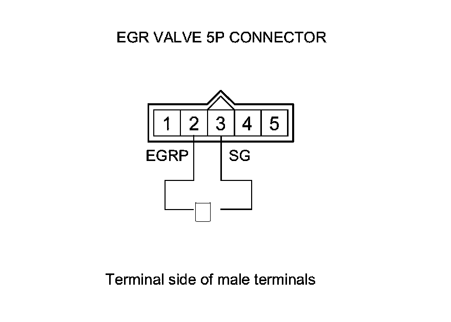 7. At the EGR valve side, measure the resistance between EGR valve 5P connector terminals No. 2 and No. 3.