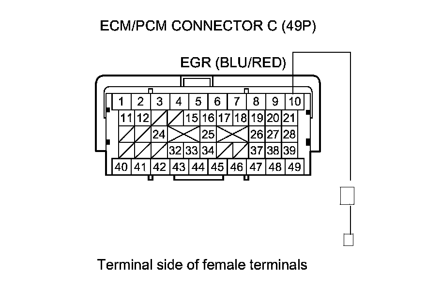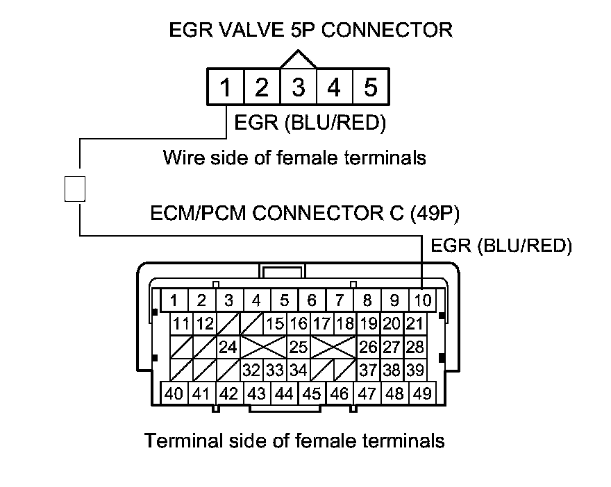13. Check for continuity between ECM/PCM connector terminal C10 and EGR valve 5P connector terminal No. 1.