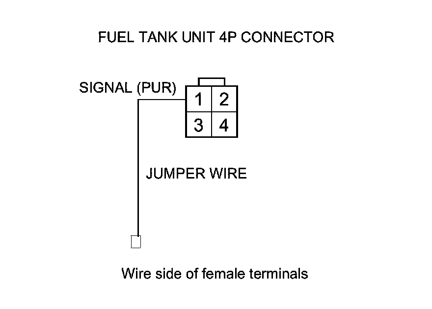 15. Connect fuel tank unit 4P connector terminal No. 1 to body ground with a jumper wire.