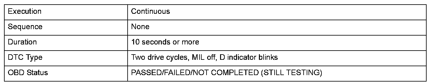 Monitor Execution, Sequence, Duration, DTC Type, OBD Status