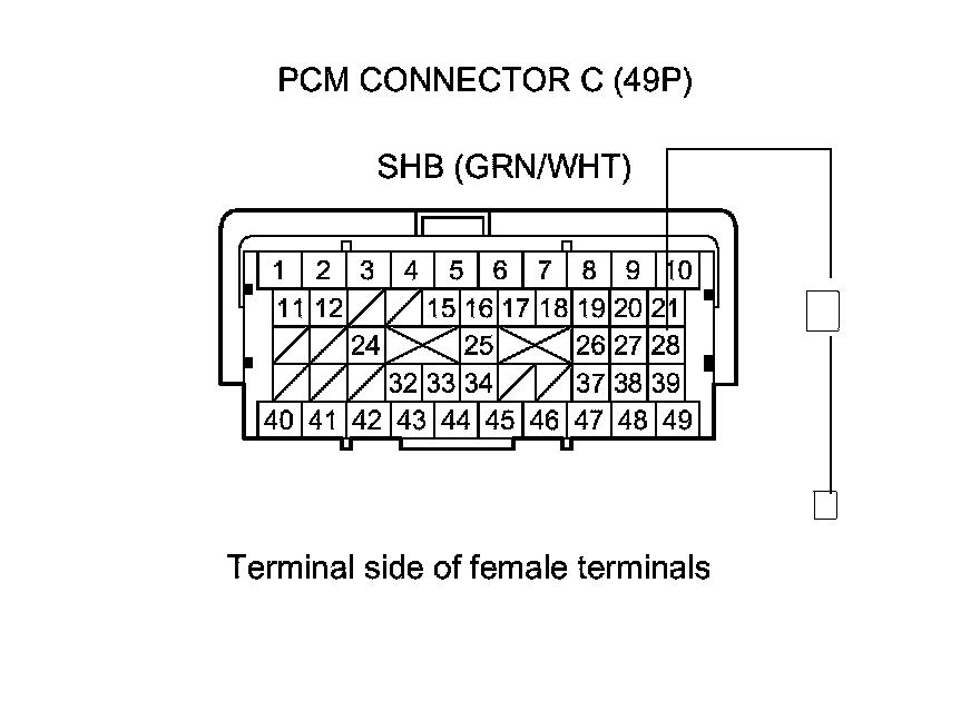 12. Measure the resistance between PCM connector terminal C28 and body ground.