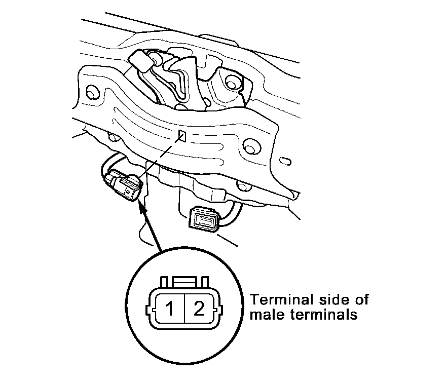 - There should be continuity between terminals No. 1 and No. 2 when the hood is opened (latch released).