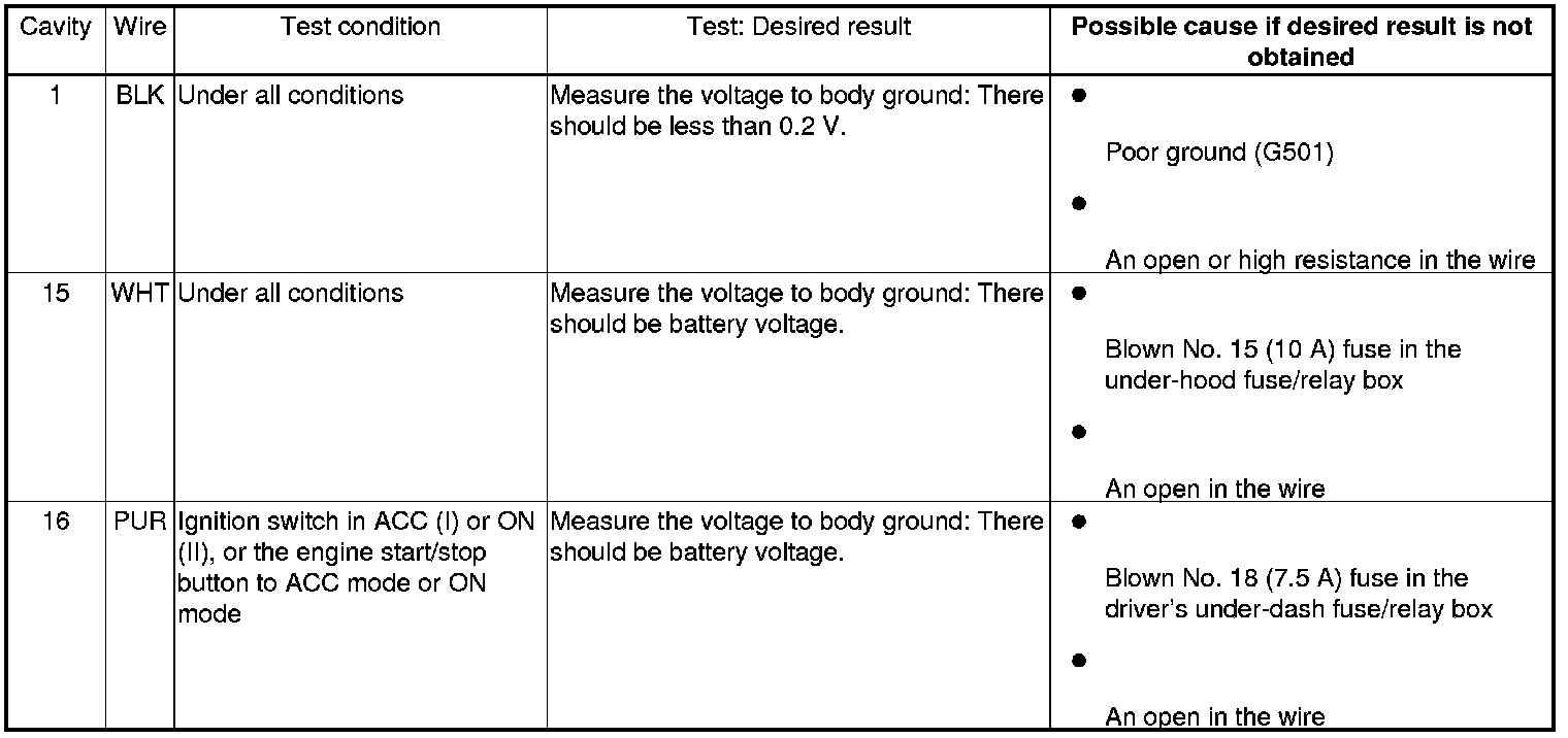 3. Reconnect the connector, and make these input tests at the connector.