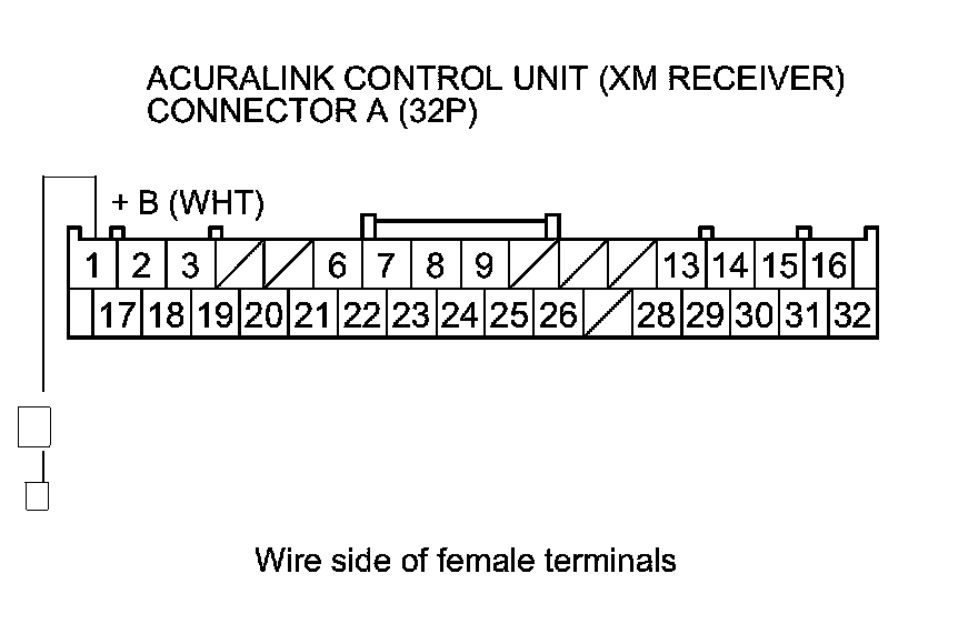 7. Measure the voltage between AcuraLink control unit (XM receiver) connector A (32P) terminal No. 1 and body ground.