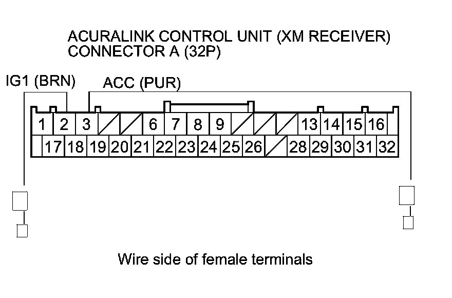 Repair an open in the wire between No. 12 (7.5 A) fuse in the driver's under-dash fuse/relay box and AcuraLink control unit (XM receiver) connector A (32P) terminal No. 2, or repair an open in the wire between the No. 18 (7.5A) fuse in the driver's under-dash fuse/relay box and AcuraLink control unit (XM receiver) connector A (32P) terminal No. 3.�