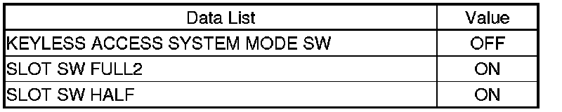 Go to the keyless access control unit input test Keyless Access System (Keyless Access Control Unit, Keyless Access Remote Slot Control Unit, and Power Control Unit) Input Test.�