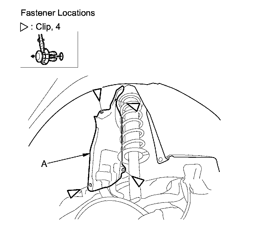 2. Detach the clips, then remove the fuel pipe protector (A).