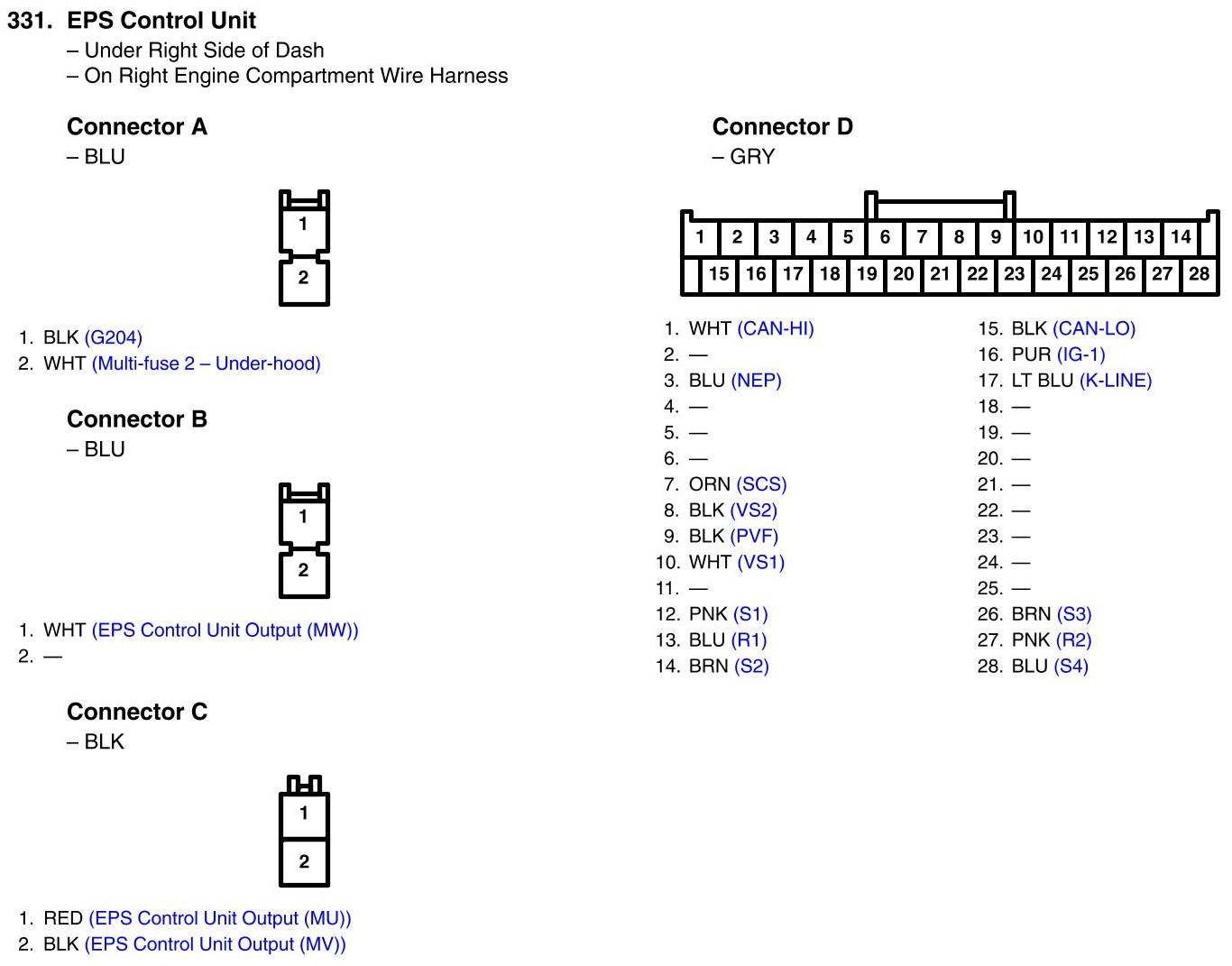 View 331 - EPS Control Unit Connector View