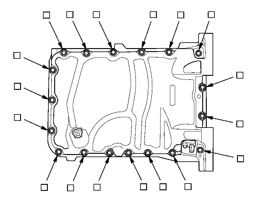 1. Remove all of the old liquid gasket from the oil pan mating surfaces, the bolts, and the bolt holes.