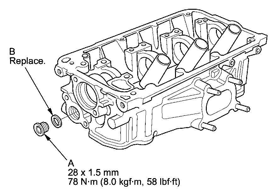 NOTE: When installing the sealing bolts (A), always use a new washer (B).