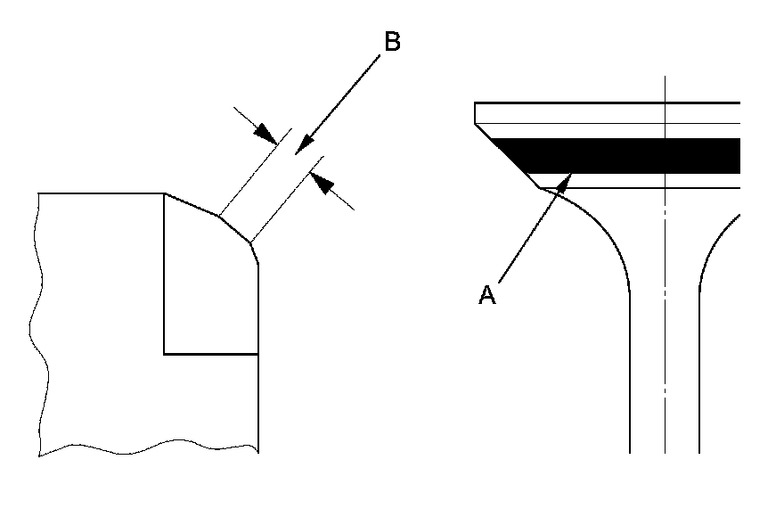 7. The actual valve seating surface (B), as shown by the blue compound, should be centered on the seat.