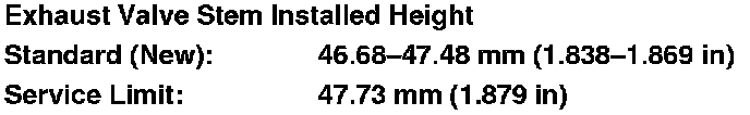 9. If the valve stem installed height is over the service limit, replace the valve and recheck. If it is still over the service limit, replace the cylinder head; the valve seat in the head is too deep.