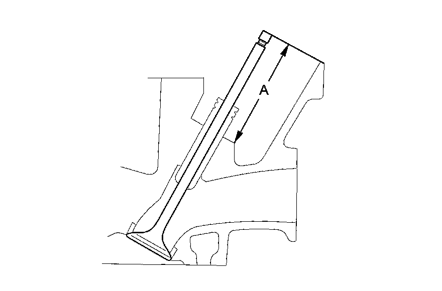 8. Insert the intake and exhaust valves in the head, and measure the valve stem installed height (A).