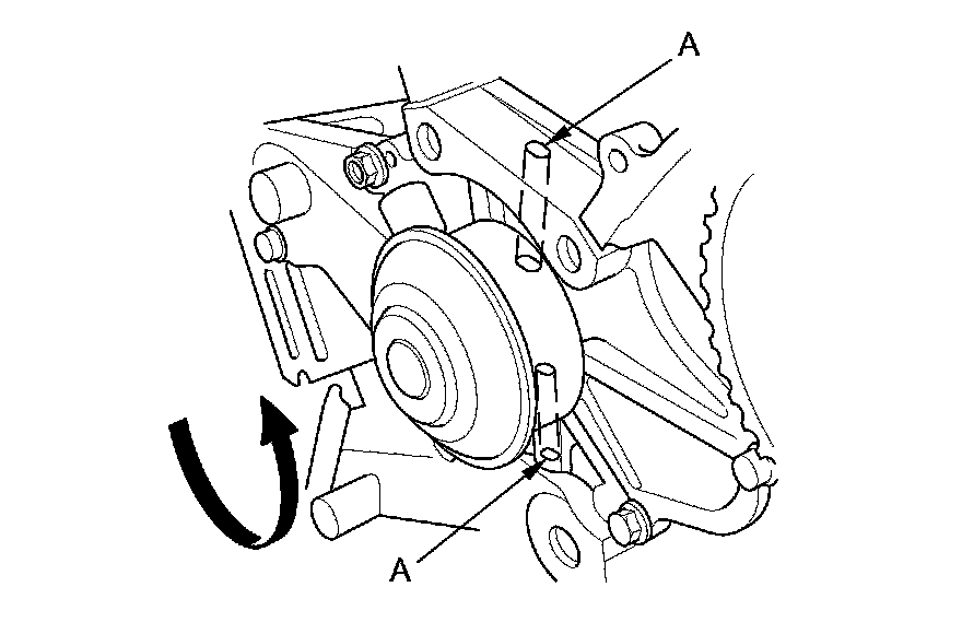 2. Turn the water pump pulley counterclockwise, and check that it turns freely. If it does not turn freely, replace the water pump Water Pump Replacement.