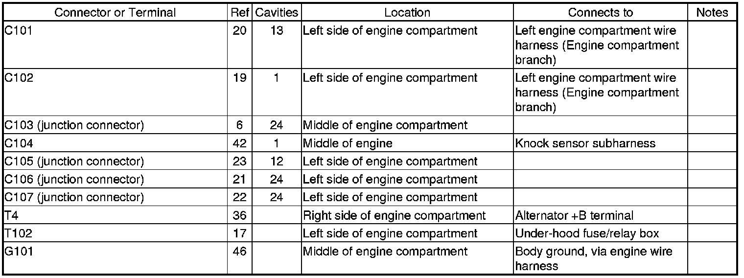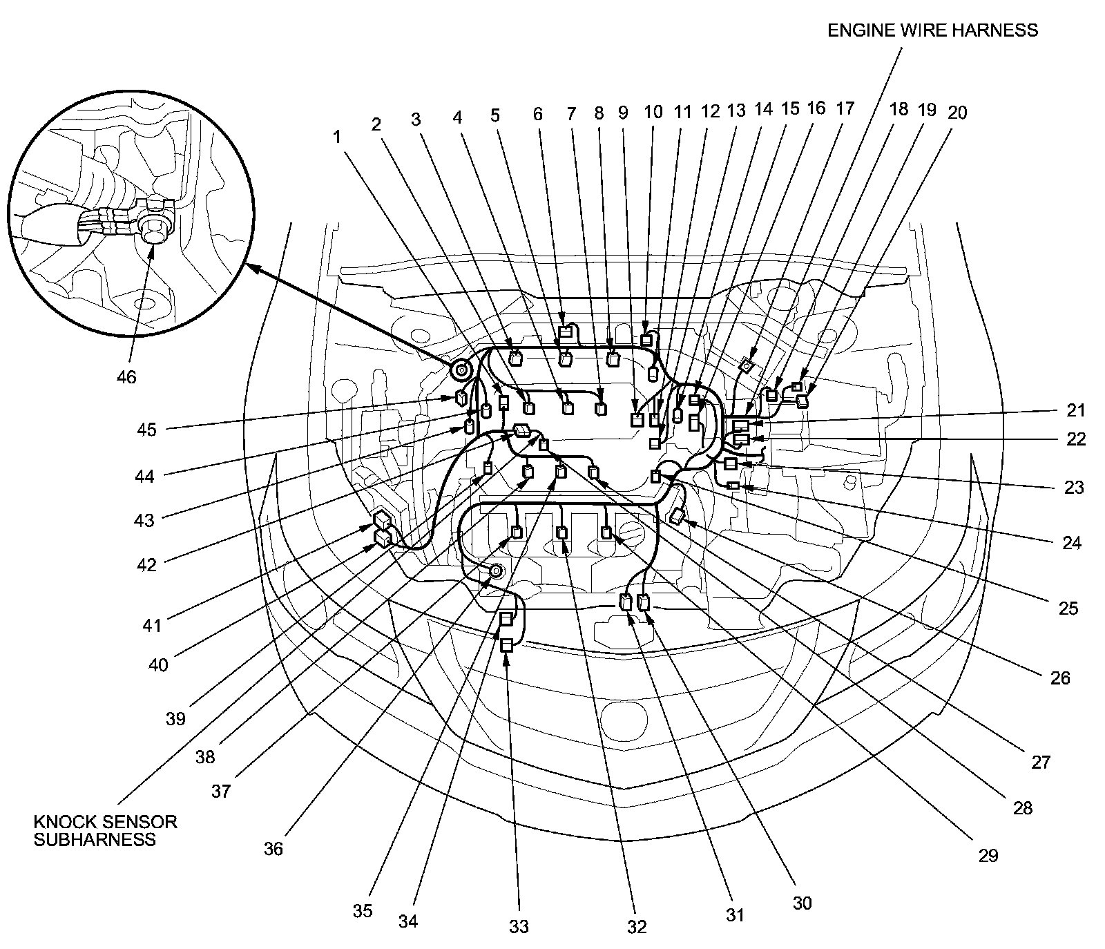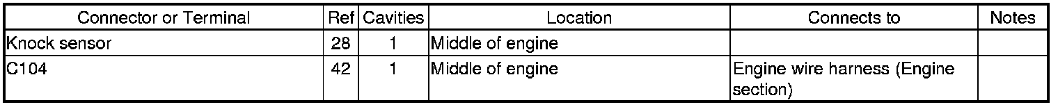 Engine Wire Harness (Engine Section) And Knock Sensor Subharness Connector And Harness Locations