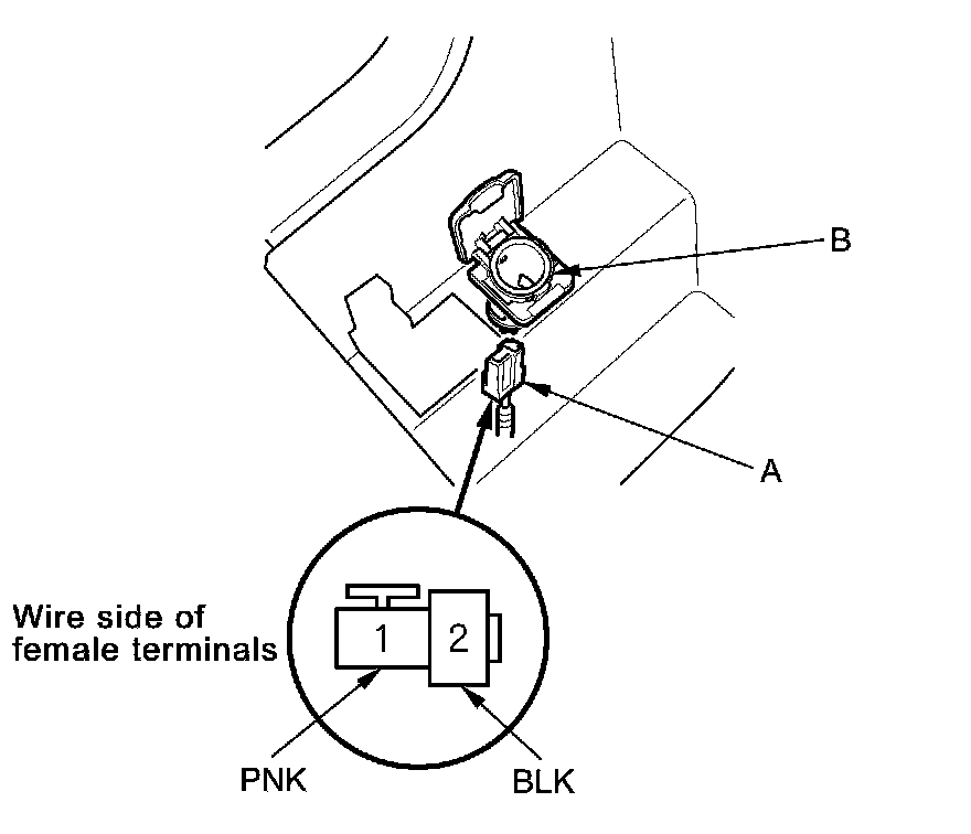 2. Disconnect the 2P connector (A) from the console accessory power socket (B).