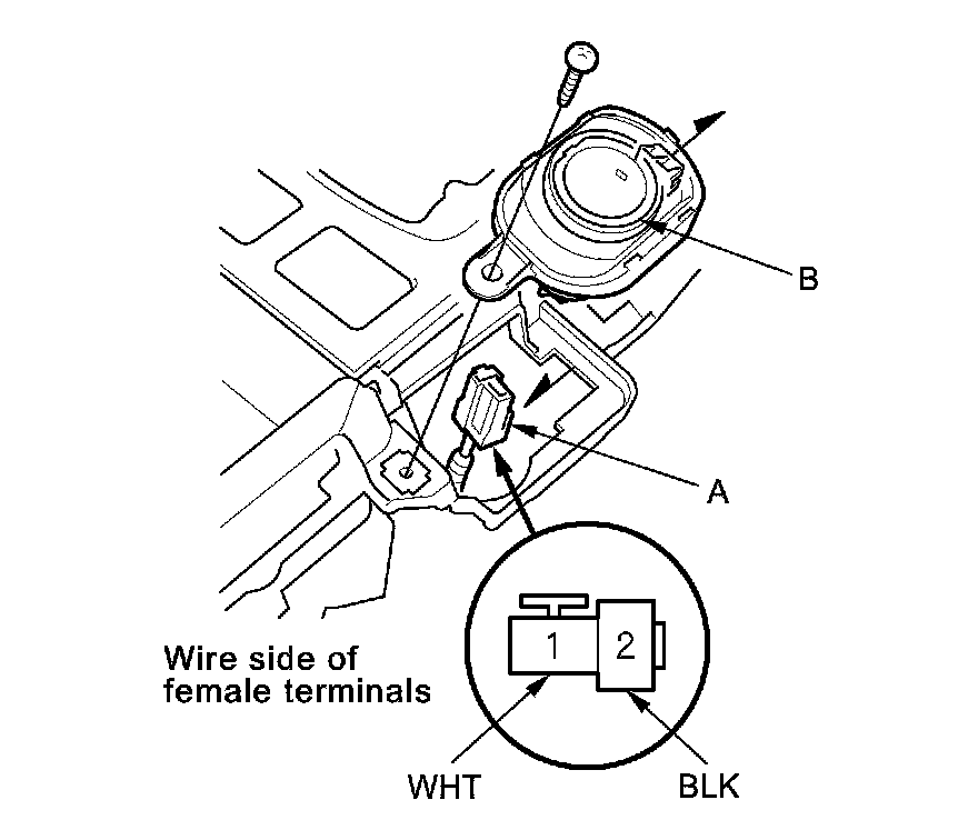 2. Disconnect the 2P connector (A) from the front accessory power socket (B).