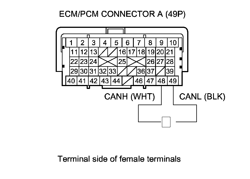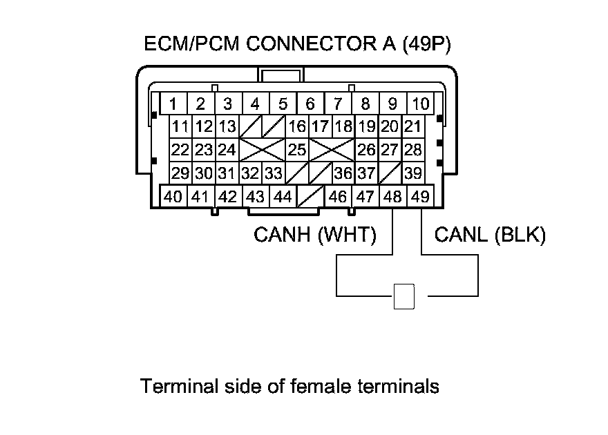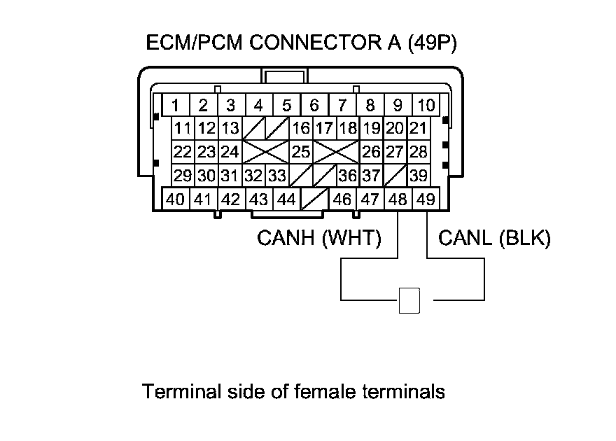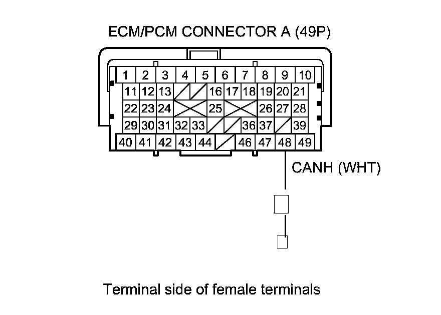 6. Check for continuity between ECM/PCM connector terminals A48 and A49.