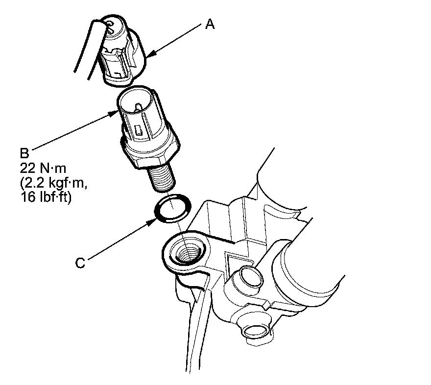 2. Install the parts in the reverse order of removal with a new O-ring (C).