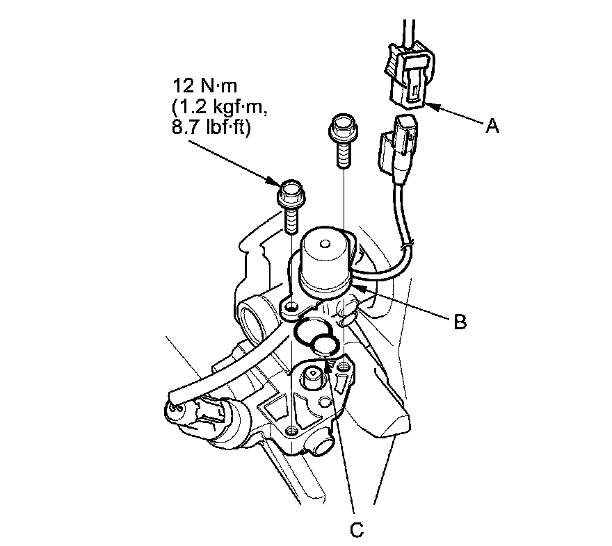 3. Install the parts in the reverse order of removal with a new O-ring (C).