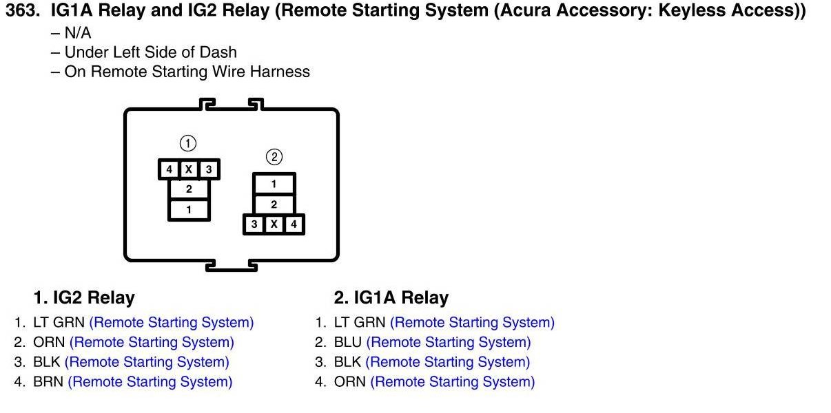 IG1A Relay and IG2 Relay Connector View (Remote Starting System (Acura Accessory: Keyless Access))
