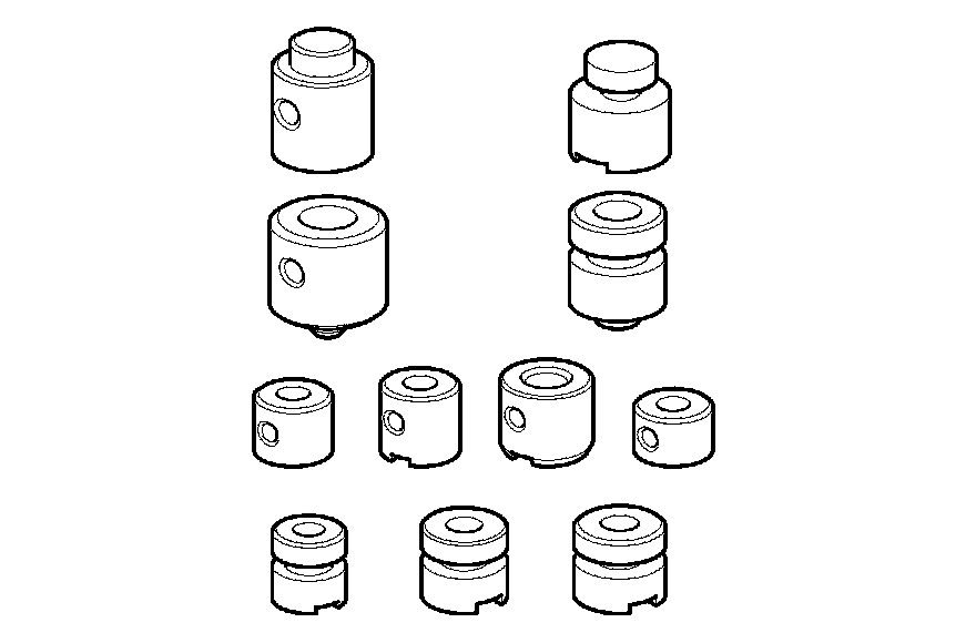 2. Install the valves and springs in the sequence shown for the main valve body Main Valve Body Disassembly, Inspection, and Reassembly, the secondary valve body Secondary Valve Body Disassembly, Inspection, and Reassembly, the regulator valve body Regulator Valve Body Disassembly, Inspection, and Reassembly, and the accumulator body Accumulator Body Disassembly, Inspection, and Reassembly. Refer to the following valve cap illustrations, and install each valve cap so the end shown facing up will be facing the outside of the valve body, then secure the valve cap with the valve cap clip.