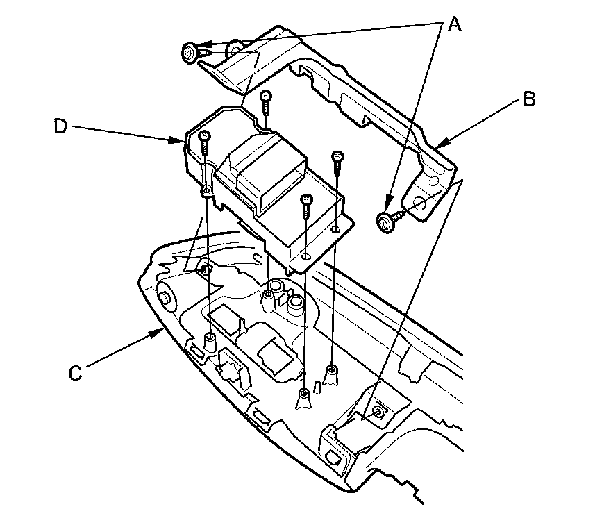 3. Remove the four screws and the front passenger's power window switch (D).