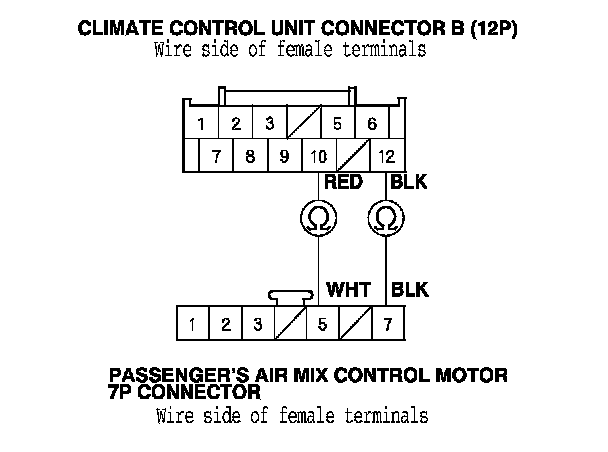 6. Test the passenger's air mix control motor. Passenger's Air Mix Control Motor Test