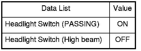 8. Check each combination light switch position value with the DATA LIST menu.