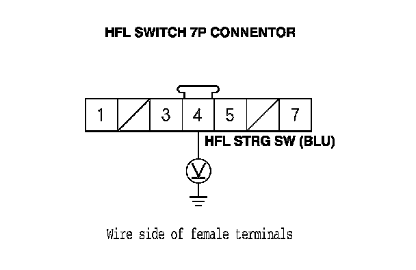 10. Measure the voltage between HFL switch 7P connector terminal No. 4 and body ground.