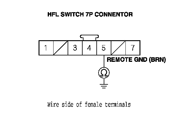 16. Check for continuity between HFL switch 7P connector terminal No. 5 and body ground.