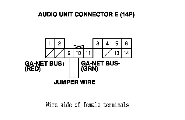 9. Connect audio unit connector E (14P) terminals No. 9 and No. 10 with a jumper wire.