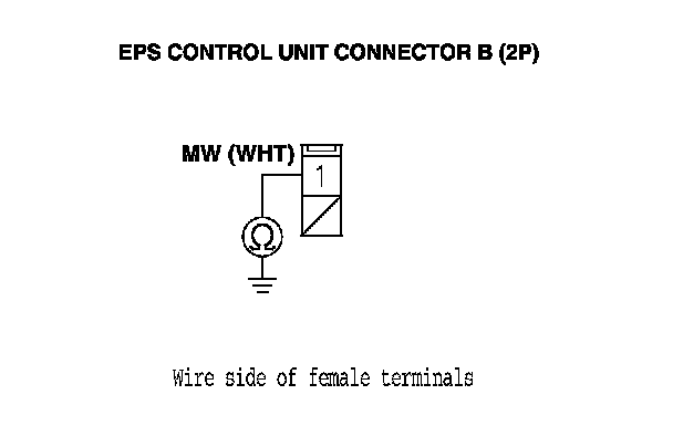 8. Check for continuity between body ground and EPS control unit connector B (2P) terminal No. 1, connector C (2P) terminal No. 1, and connector C (2P) terminal No. 2 individually.